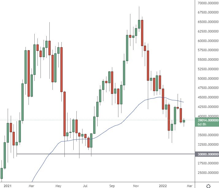 Bitcoin is trying to get back above $40k on Monday but a further escalation in Russia risks the coin dropping to $30k.