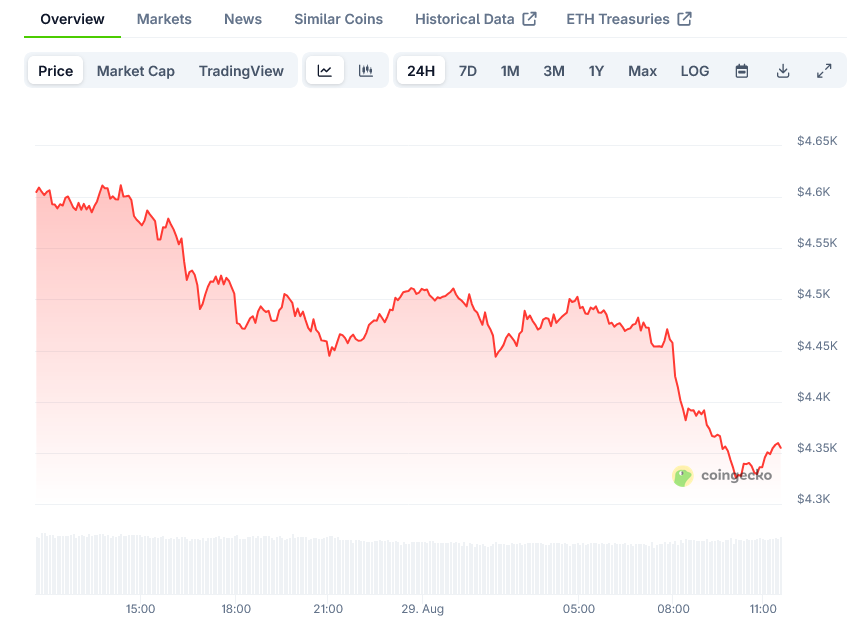 Ethereum, the second-largest cryptocurrency by market capitalization, is showing signs of weakening momentum after recent attempts to push higher. The cryptocurrency has been facing resistance at the $4,630 level, with bears maintaining control of the market.
